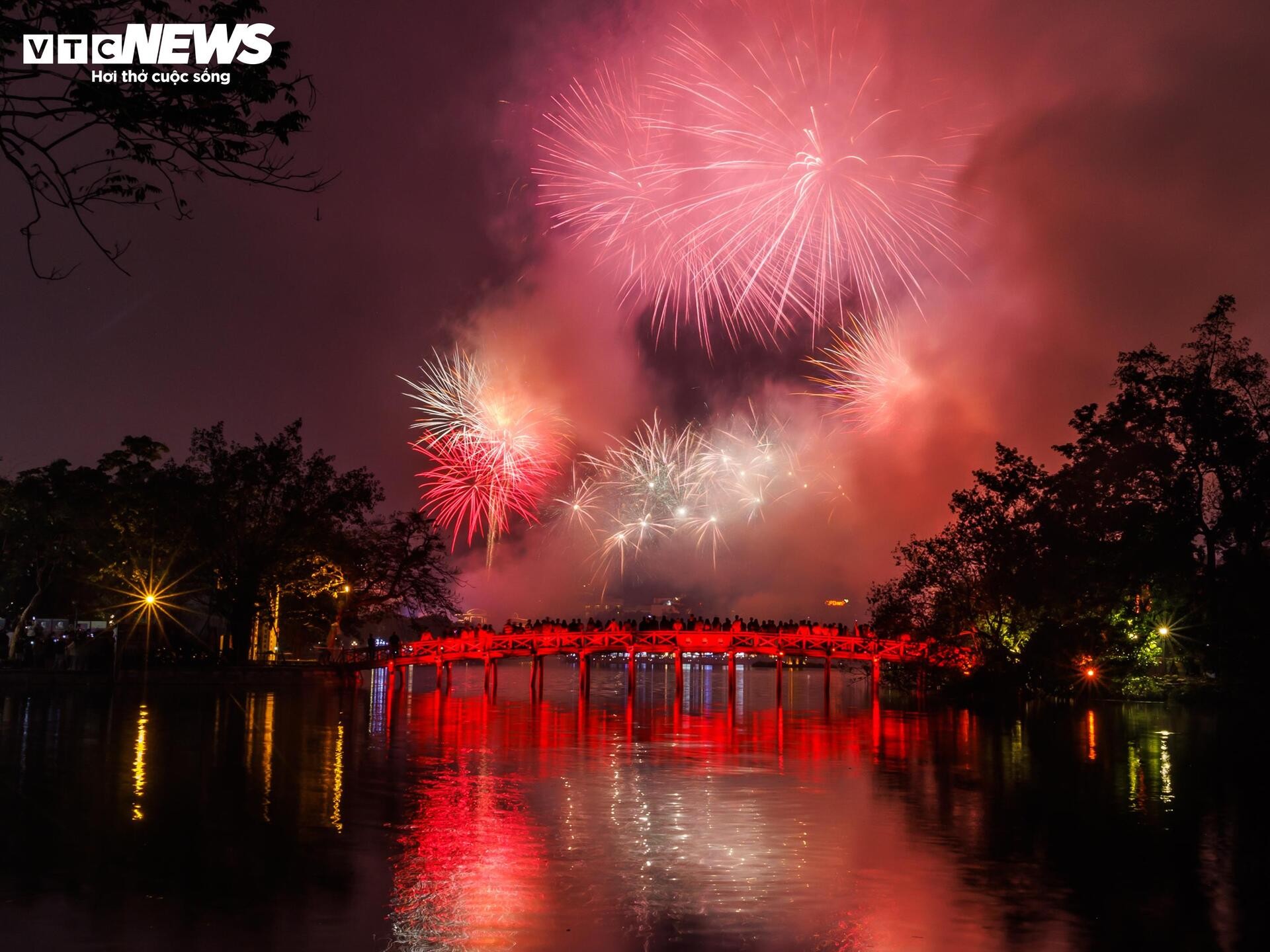 Khu vực phố đi bộ quanh Hồ Gươm (phường Hoàn Kiếm) là một trong những điểm bắn pháo hoa tầm cao.