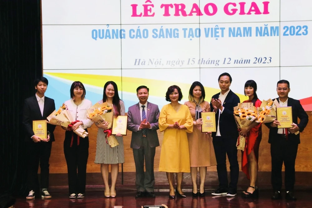 Tác giả của các tác phẩm đạt Giải thưởng Quảng cáo sáng tạo Việt Nam 2023 nhận giải thưởng từ Ban Tổ chức.