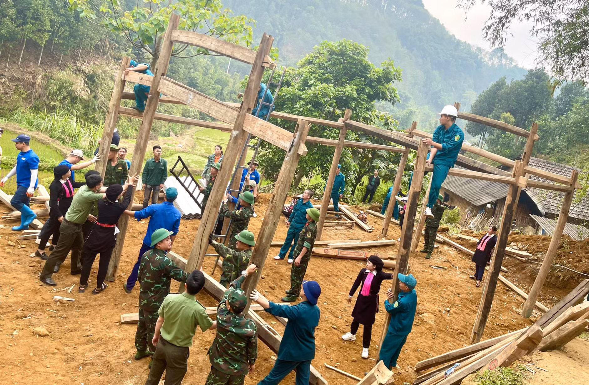 LLVT huyện Bảo Thắng tham gia giúp người dân xã Phong Niên dựng nhà.