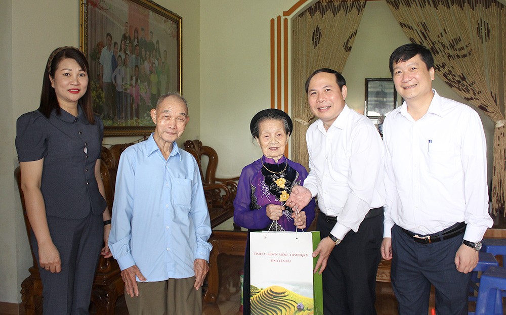 Các đồng chí lãnh đạo Văn phòng Tỉnh ủy Yên Bái thăm hỏi, động viên gia đình cụ Vũ Thị Vinh (91 tuổi) ở thôn Đồng Chuối ở thôn Đất Đen, xã Cường Thịnh, huyện Trấn Yên, là những nhân chứng lịch sử có nhiều năm gắn bó với Di tích cách mạng Gò cọ Làng Chiềng, xã Cường Thịnh.