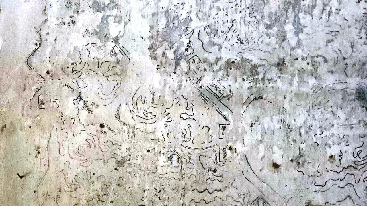 Bức họa được phát lộ trong quá trình vệ sinh, bóc tách các lớp sơn cũ trên tường di tích Khâm Thiên Giám để phục vụ công tác trùng tu. Khi lớp phủ bị loại bỏ, trên bề mặt tường hiện ra một hình vẽ có bố cục giống bản đồ.