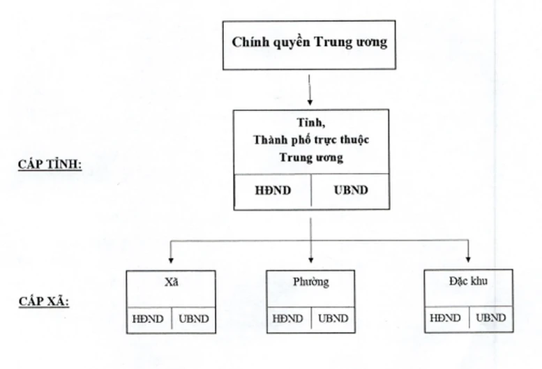 Theo Đề án, phương án tổ chức chính quyền địa phương 2 cấp như sau: Cấp tỉnh gồm tỉnh, thành phố trực thuộc trung ương; (2) cấp xã gồm xã, phường (trong đất liền) và đặc khu (ở hải đảo). Theo đó, bỏ ĐVHC cấp huyện và thị trấn.