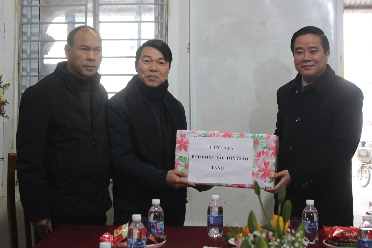 Lãnh đạo Thị ủy Sa Pa tặng quà Giáo xứ Sa Pa.