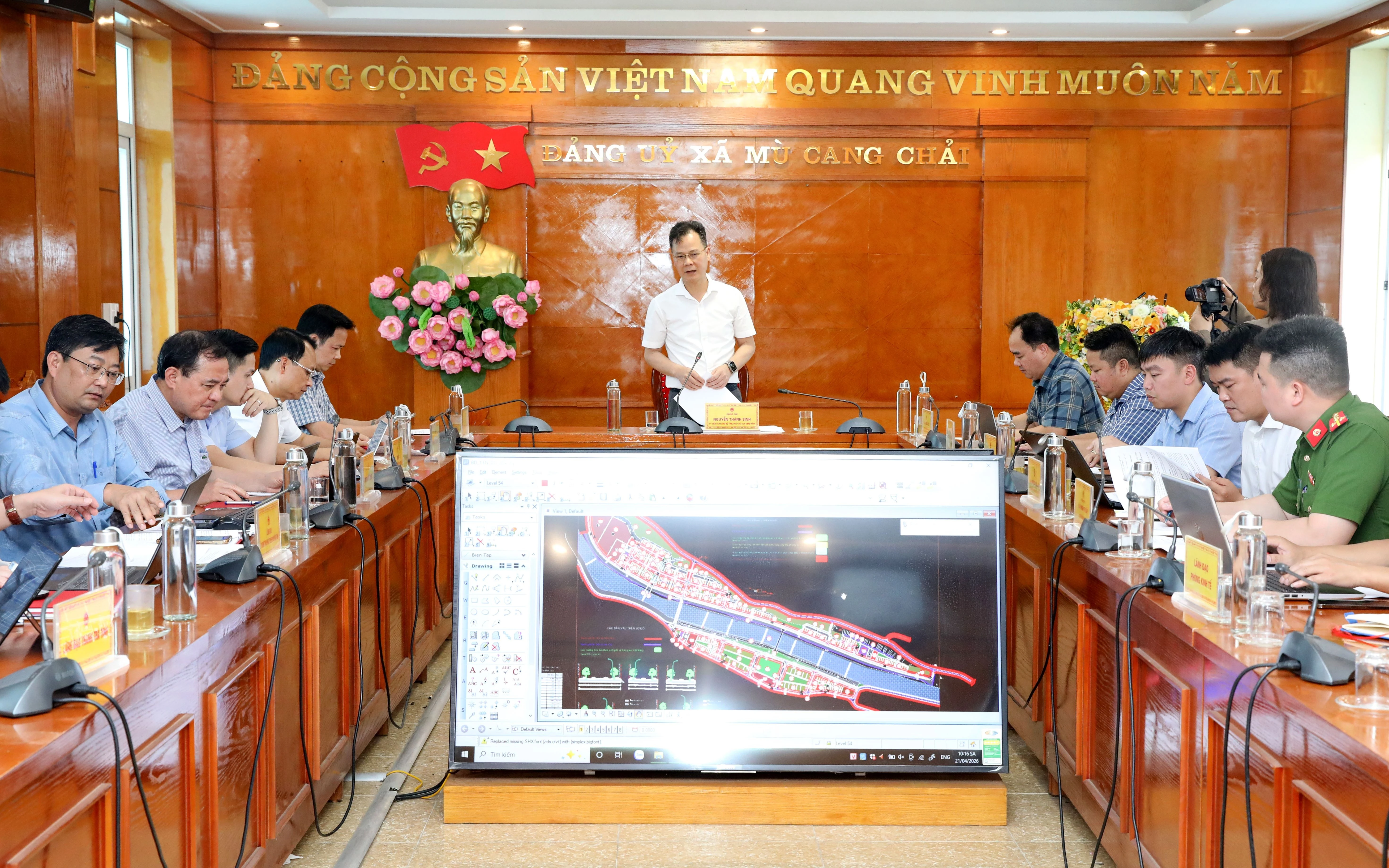 Tiếp đó, đồng chí Phó Chủ tịch UBND tỉnh Nguyễn Thành Sinh và Đoàn công tác của tỉnh đã có buổi làm việc với lãnh đạo xã Mù Cang Chải về tiến độ thực hiện công tác thu hồi đất, giải phóng mặt bằng thực hiện dự án Khu đô thị mới Mù Cang Chải; tình hình triển khai đo đạc, lập bản đồ địa chính và xây dựng cơ sở dữ liệu đất đai theo Kế hoạch 149/KH-UBND ngày 06/4/2026 của UBND tỉnh; công tác quản lý khai thác khoáng sản; công tác giải quyết đơn thư, khiếu nại, tố cáo, kiến nghị phản ánh và công tác quản lý đất đai trên địa bàn xã.