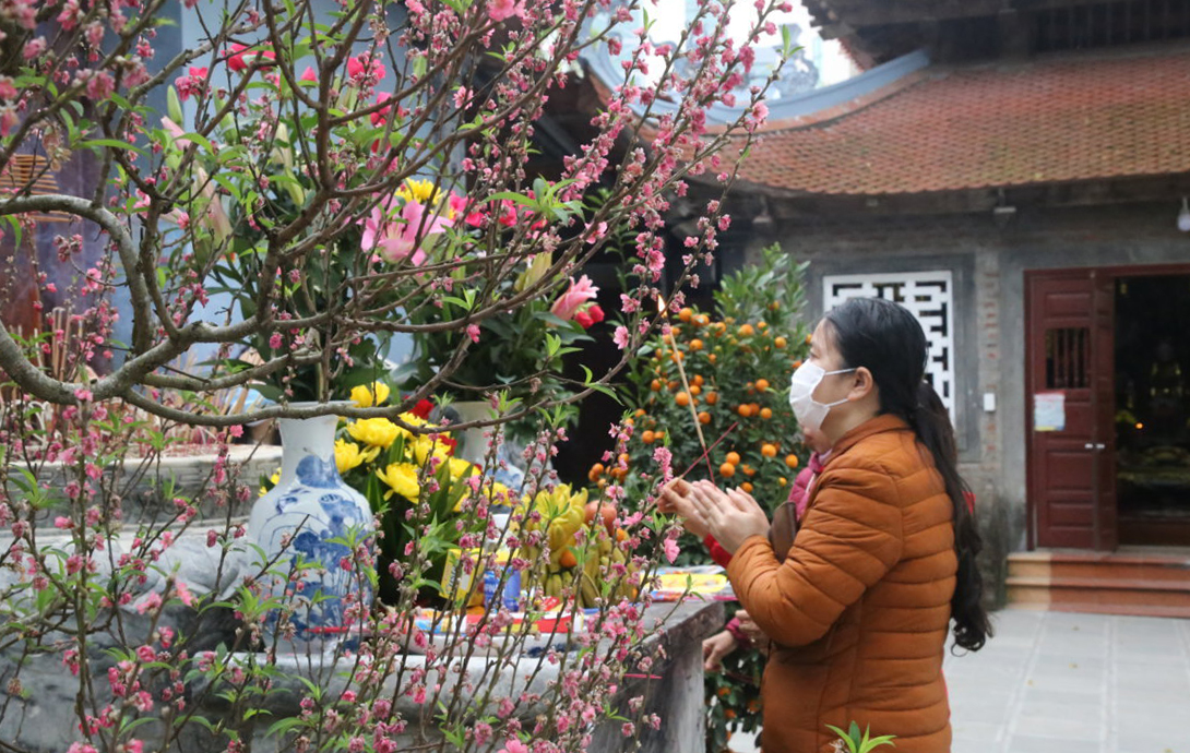 Phần lớn người dân đều chấp hành đeo khẩu trang khi đi lễ đầu năm.