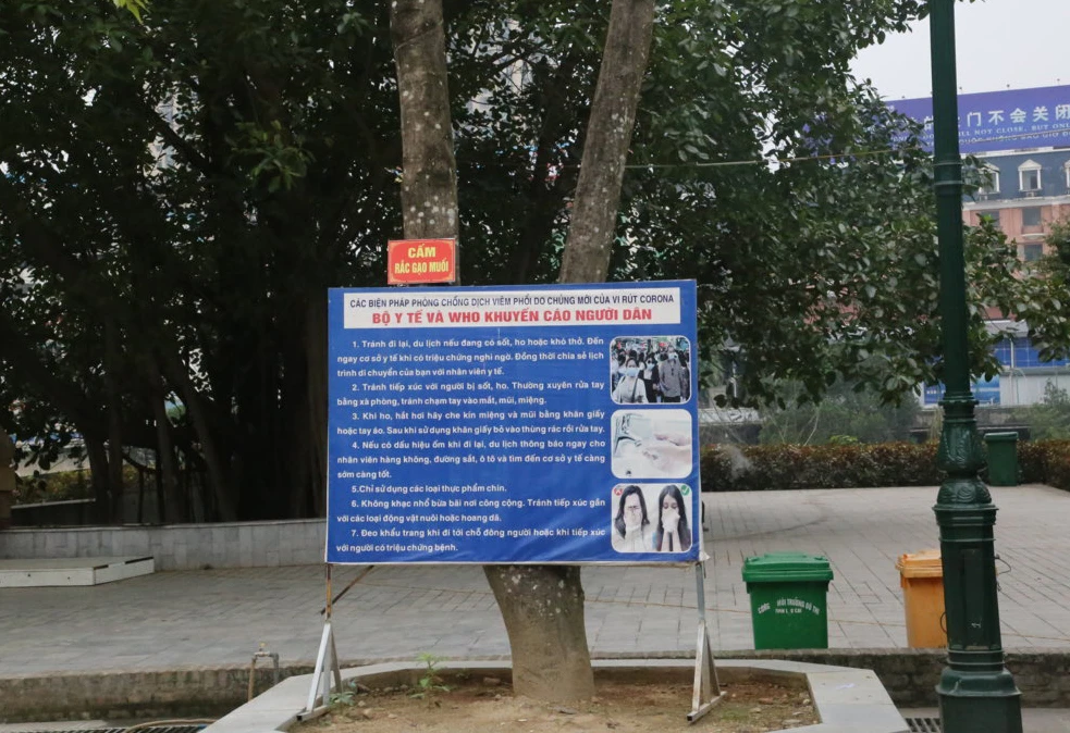 Bảng tuyên truyền phòng, chống dịch Covid-19 tại đền Mẫu.
