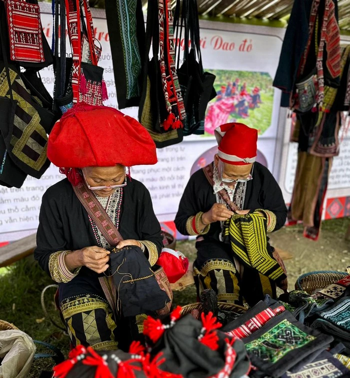 Thiếu nữ người Dao đỏ thêu thổ cẩm.