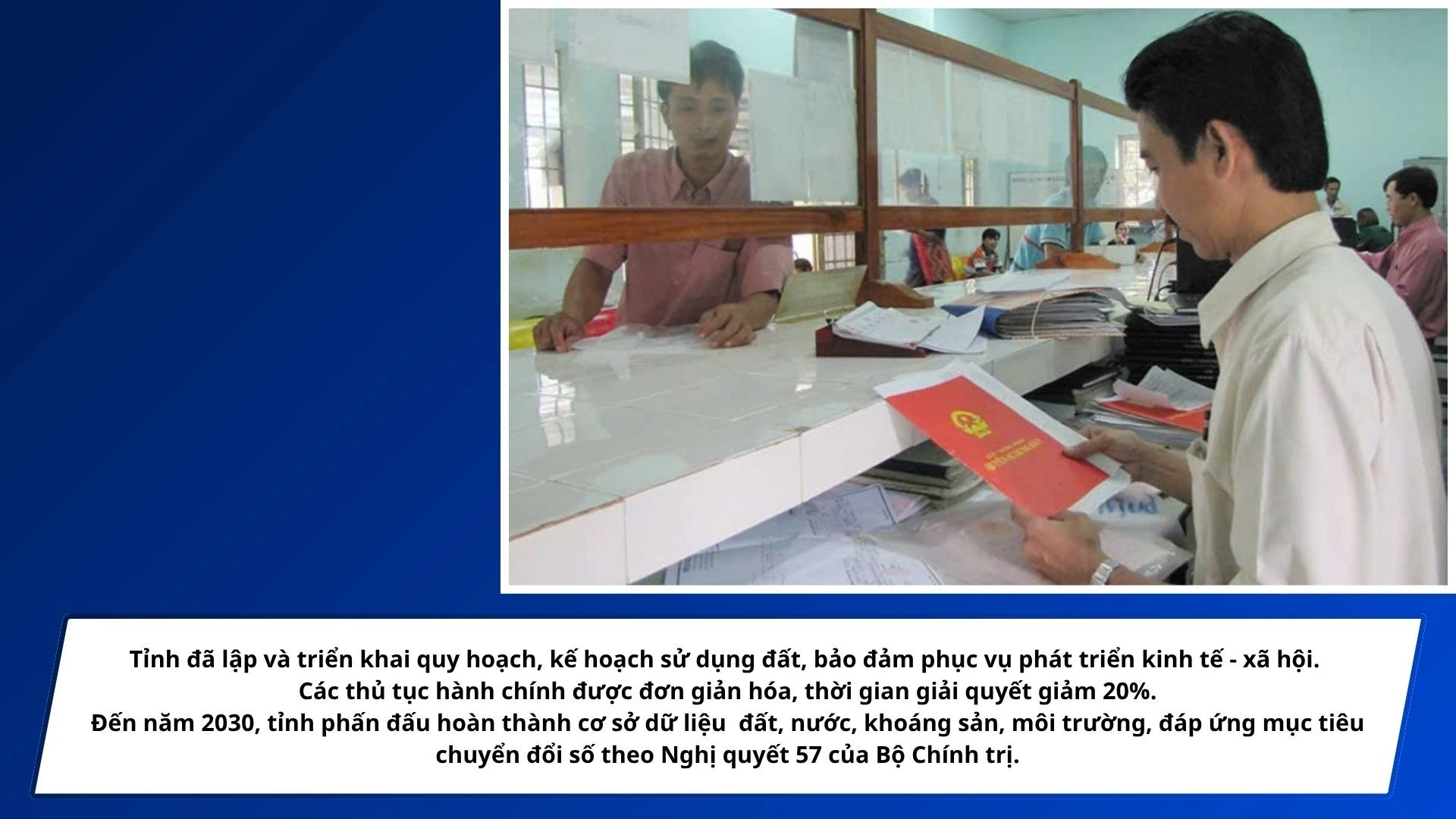 Thực tế, công tác quản lý, khai thác và sử dụng đất đai của tỉnh ngày càng chặt chẽ, hiệu quả. Tỉnh đã lập và triển khai quy hoạch, kế hoạch sử dụng đất, bảo đảm phục vụ phát triển kinh tế - xã hội. Các thủ tục hành chính được đơn giản hóa, thời gian giải quyết giảm 20%. Đến nay, toàn tỉnh đã cấp trên 28 nghìn giấy chứng nhận quyền sử dụng đất cho tổ chức, cá nhân; giao đất, cho thuê đất cho gần 700 tổ chức với diện tích trên 6.800 ha.