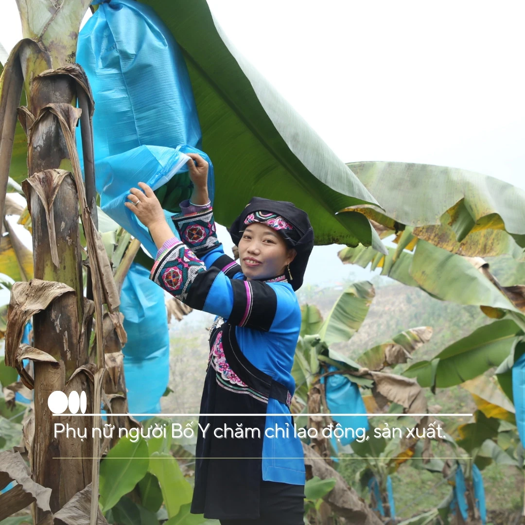 Dẫn chúng tôi tham quan vùng trồng chuối rộng 3 ha của đồng bào Bố Y ở thôn Lao Hầu, xã Thanh Bình (huyện Mường Khương), Trưởng thôn Lồ Củi Thàng giới thiệu: Trong 70 hộ của thôn có 68 hộ người Bố Y. Trước đây, người Bố Y trong thôn chưa hình thành tư duy phát triển nông nghiệp hàng hóa, nhưng nay đã khác. Nhờ sáng tạo, không ngừng học hỏi kinh nghiệm sản xuất, một số vùng nông nghiệp hàng hóa như chuối, mía, chè đã hình thành, đem lại thu nhập ổn định, cuộc sống của người dân đã thay đổi tích cực.