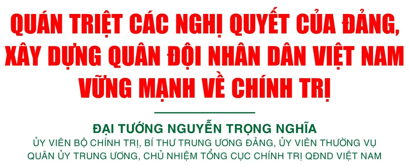 Quán triệt sâu sắc và tổ chức thực hiện thắng lợi Nghị quyết Đại hội Đảng bộ Quân đội lần thứ XII và Nghị quyết Đại hội XIV của Đảng, xây dựng Quân đội cách mạng, chính quy, tinh nhuệ, hiện đại, vững mạnh về chính trị là trách nhiệm, vinh dự của toàn Đảng, toàn dân, toàn quân. Phát huy truyền thống vẻ vang của Quân đội anh hùng, QĐND Việt Nam nguyện tuyệt đối trung thành; kiên định mục tiêu, lý tưởng cách mạng; sẵn sàng chiến đấu, hy sinh, bảo vệ vững chắc Tổ quốc Việt Nam xã hội chủ nghĩa trong mọi tình huống, xứng đáng là lực lượng chính trị, lực lượng chiến đấu tuyệt đối trung thành, tin cậy với Tổ quốc, với Đảng, Nhà nước và nhân dân.