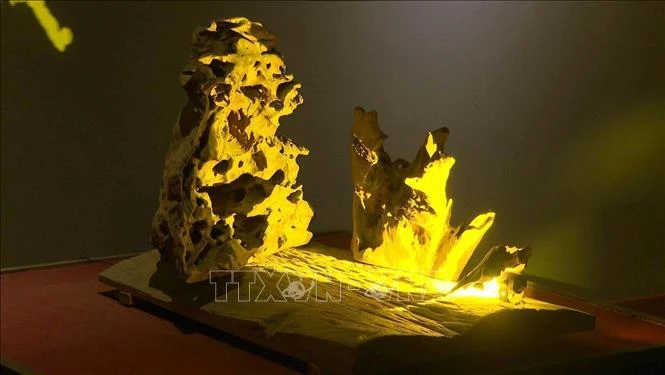 Tác phẩm nghệ thuật từ thân gỗ xù xì của anh Bùi Văn Tự. Ảnh: Thuỳ Dung/TTXVN