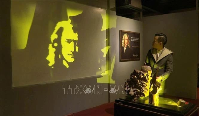Tác phẩm "Điêu khắc ánh sáng" chân dung của các nhà khoa học, danh họa, nhạc sĩ nổi tiếng trên thế giới của anh Bùi Văn Tự. Ảnh: Thuỳ Dung/TTXVN
