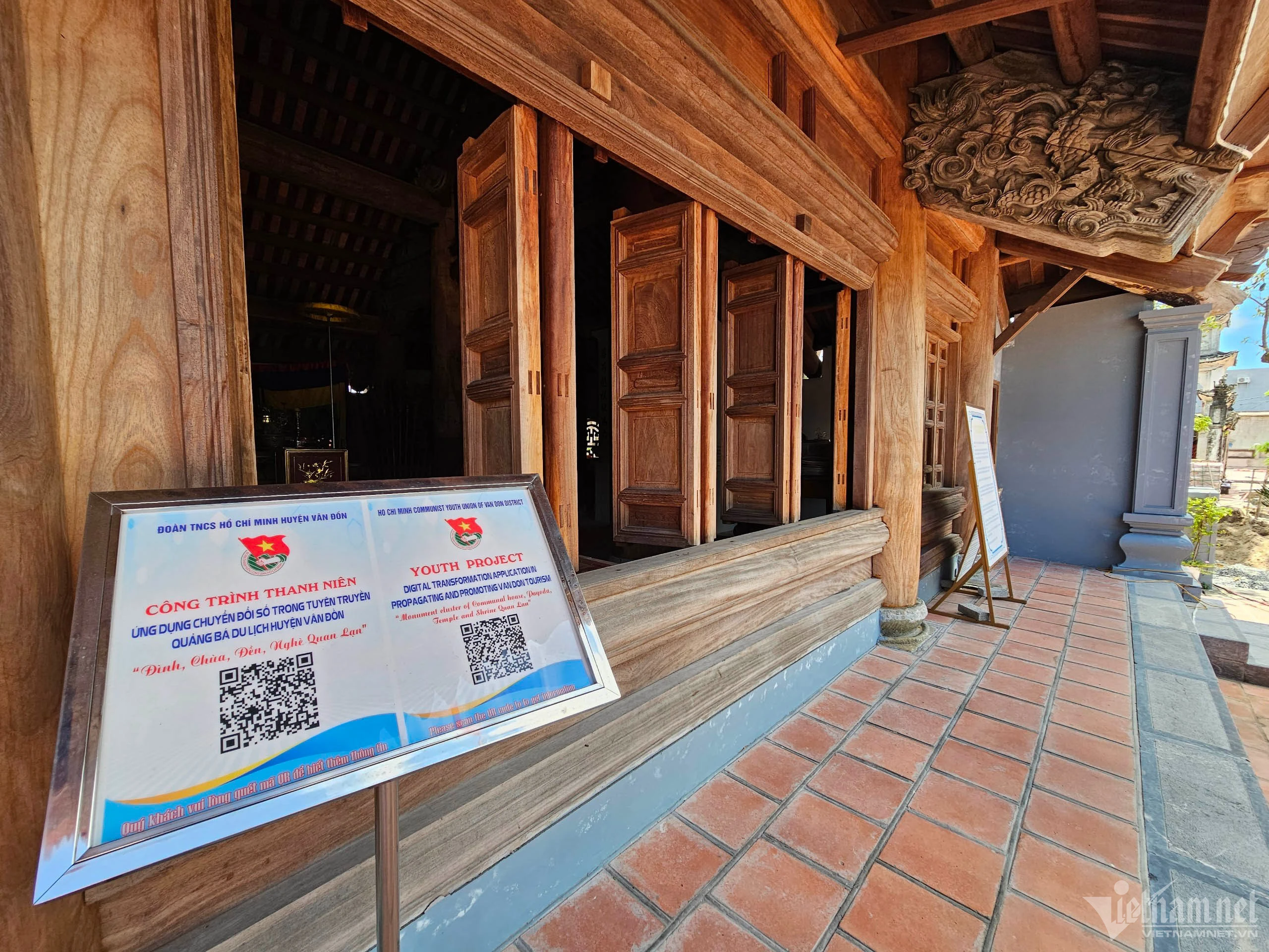 Mã QR tại đình Quan Lạn giúp du khách thuận tiện tra cứu thông tin.