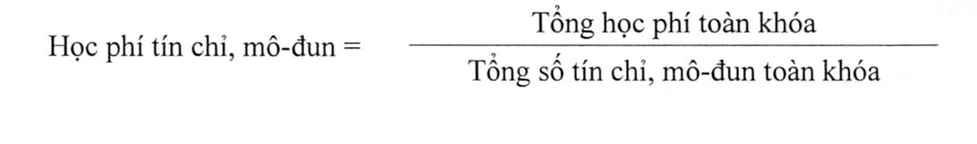 Về học phí đào tạo đại học tính theo tín chỉ, mô-đun, mức thu học phí của một tín chỉ, mô-đun được xác định căn cứ vào tổng thu học phí của toàn khóa học theo nhóm ngành, nghề đào tạo và tổng số tín chỉ, mô-đun toàn khóa theo công thức dưới đây:
