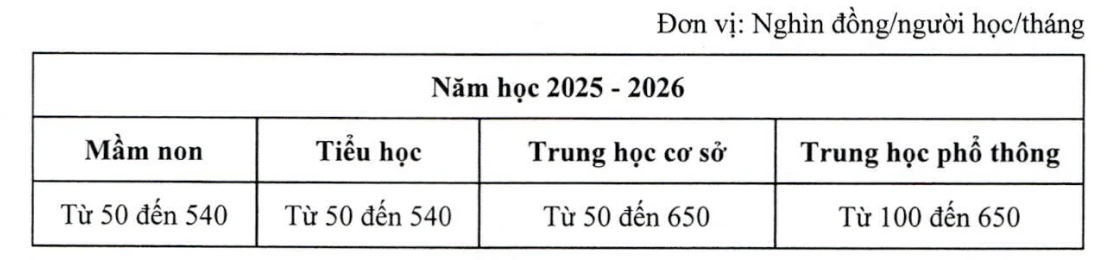 Đối với năm học 2025 - 2026 (mức sàn - mức trần):