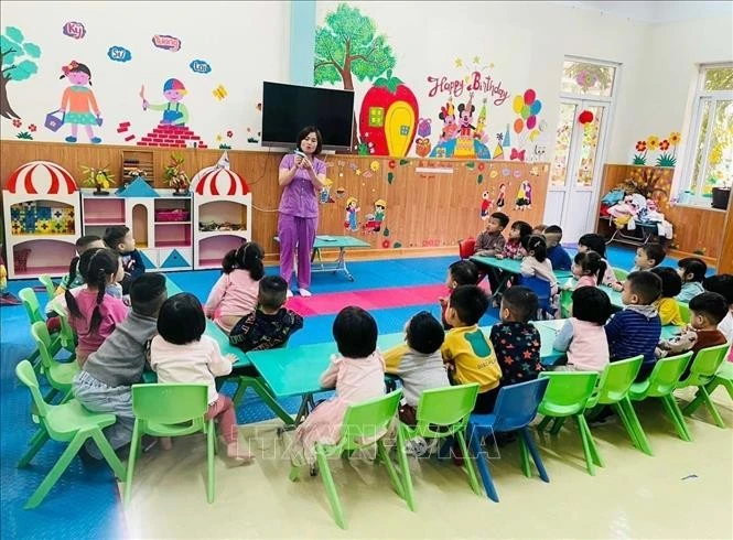 Một lớp học tại Trường mầm non tư thục Sao Mai Vĩnh Phúc trên địa bàn thành phố Vĩnh Yên. Ảnh minh họa: Nguyễn Thảo/TTXVN
