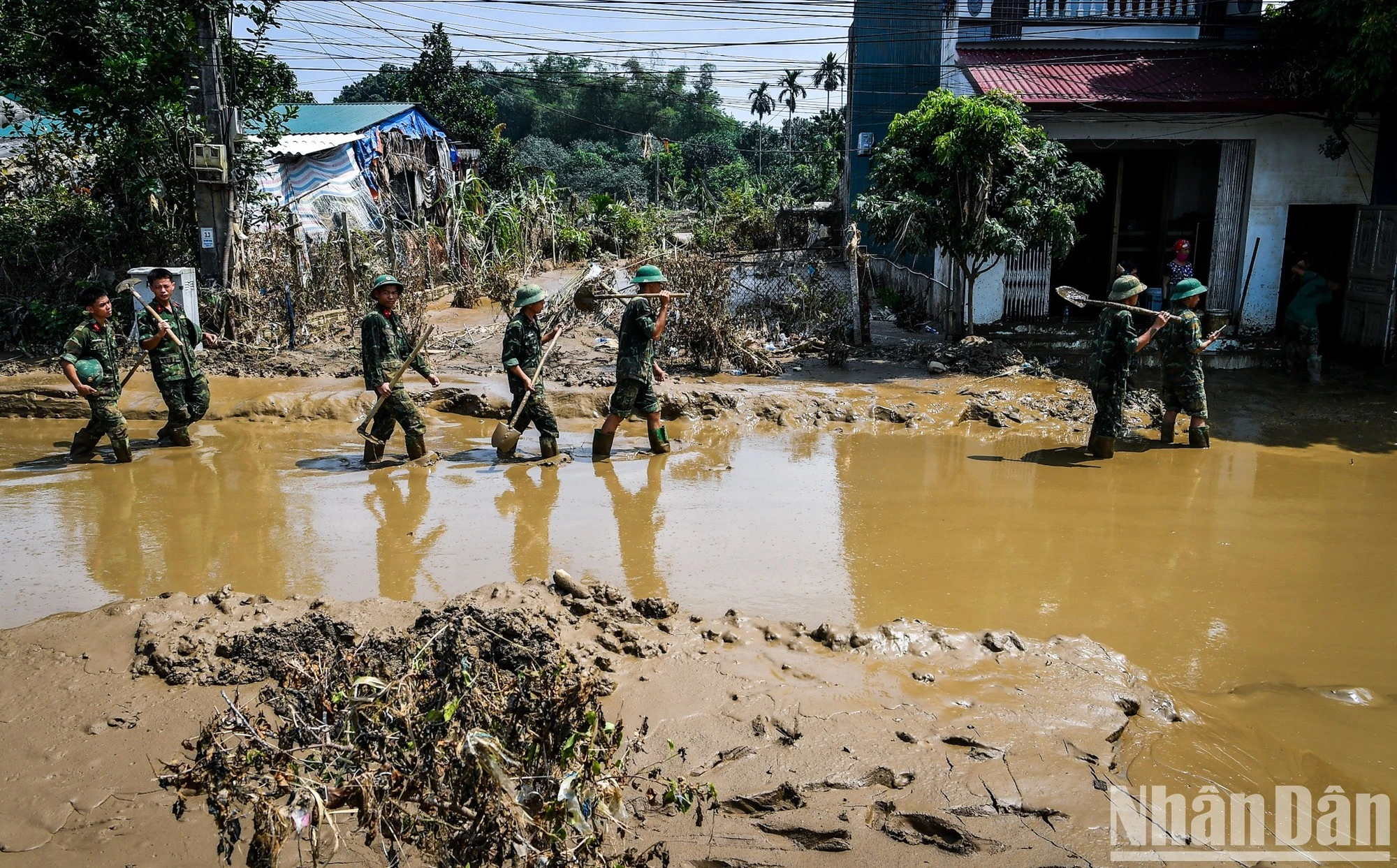 “Lũ tới, bà con mất mát rất nhiều. Tàu phải được thông nhanh cho mọi người bớt khổ”, lóp ngóp lội bùn, chị Hiền nói.