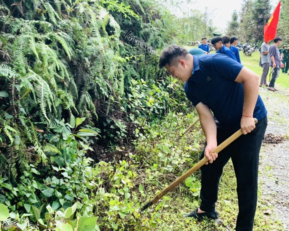 Cũng trong chương trình, Đoàn Thanh niên Công an tỉnh, Huyện đoàn Mường Khương, Chi đoàn Đồn Biên phòng Pha Long đã quét dọn vệ sinh, phát quang đường biên, mốc giới trên địa phận xã Tả Ngài Chồ (ảnh trên).
