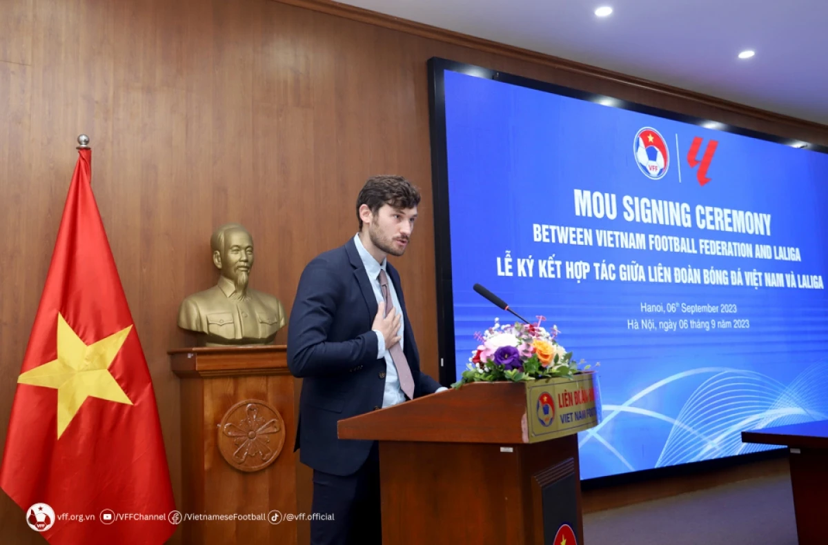 Ông Ivan Codina - Giám đốc điều hành LaLiga khu vực châu Á Thái Bình Dương - LaLiga khẳng định Việt Nam là một quốc gia có tầm quan trọng về chiến lược ở châu Á đối với LaLiga, đồng thời chia sẻ sự tự hào khi có cơ hội hợp tác với VFF để hỗ trợ phát triển bóng đá.