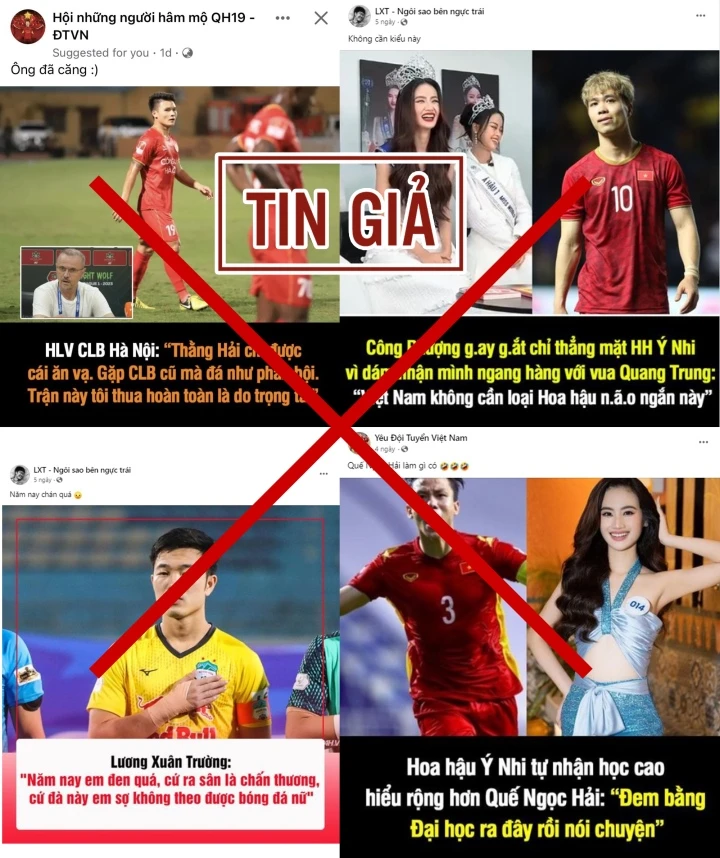 Nguồn phát tán thông tin xuyên tạc, bịa đặt là các trang Facebook gắn tên cầu thủ nổi tiếng hoặc các đội bóng, nội dung lan truyền thường là những câu bình luận gây sốc (thường là quan điểm đi ngược lại quan điểm số đông, hoặc dùng ngôn từ phản cảm) để hút tương tác. Điểm chung của những bài đăng này là thường đính kèm đường dẫn đến các trang "rác", có tên miền tiếng nước ngoài, hoặc các cụm kí tự, hoặc phần mở rộng không phổ biến (.app, .xyz).