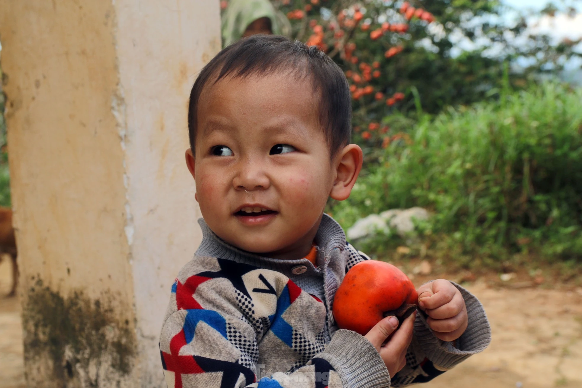 Hồng cũng là món ăn ưa thích của những đứa trẻ người Mông nơi đây.