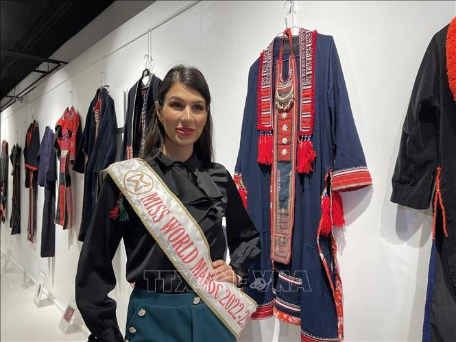 Cô Sonia Ait Mansour (du học sinh Maroc tại Pháp), sẽ dự thi Miss World 2023 vào cuối tháng 11 tại Dubai bên trang phục của người Dao Đỏ.