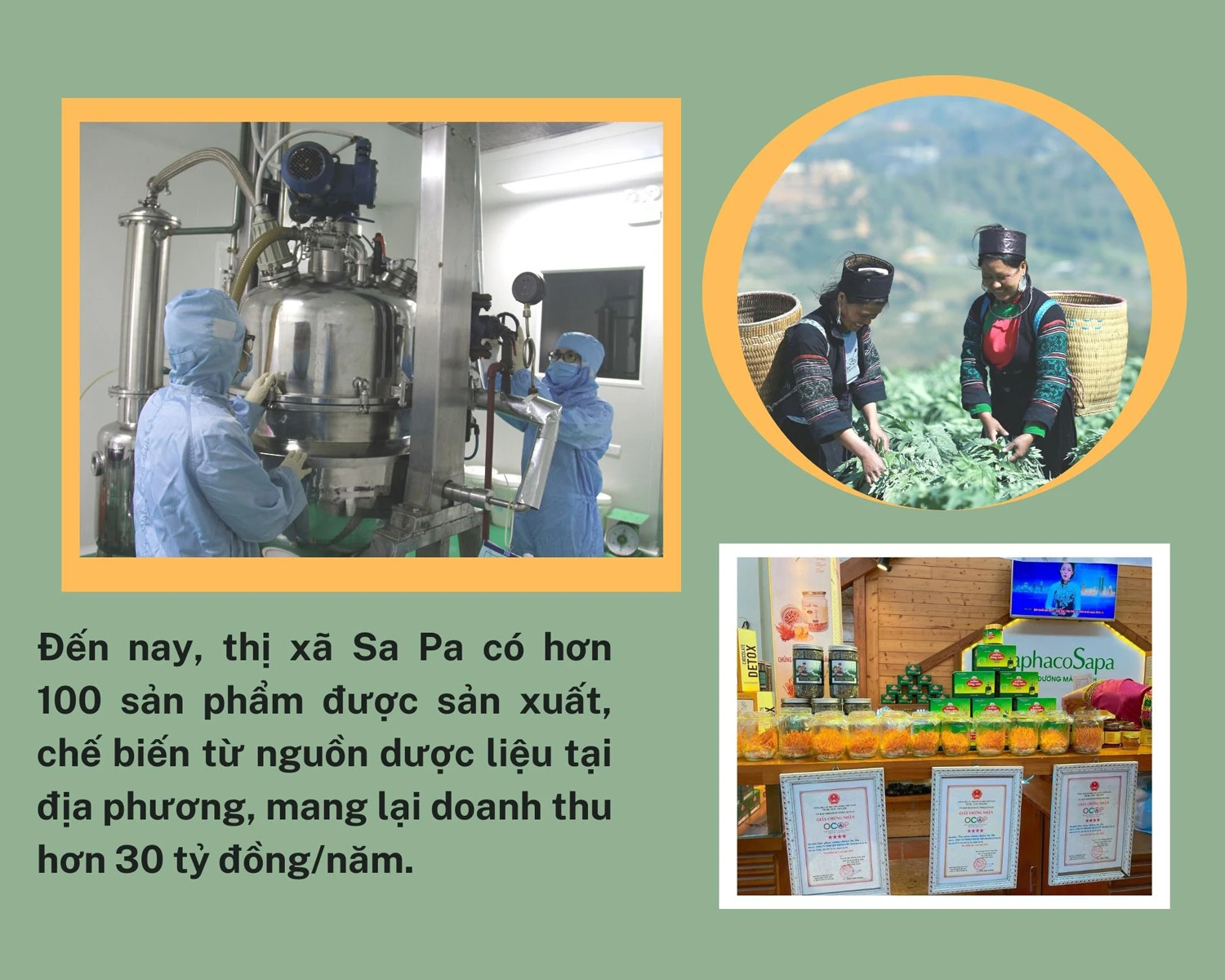 Công ty TNHH Một thành viên Traphaco Sa Pa là doanh nghiệp sản xuất dược liệu gắn bó với thị xã Sa Pa hơn 20 năm nay. Đơn vị đã liên kết với hàng trăm hộ trên địa bàn để phát triển vùng nguyên liệu phục vụ chế biến. Hằng năm, công ty đều áp dụng các tiến bộ khoa học - kỹ thuật, nâng cấp quy trình sản xuất, thực hiện các nghiên cứu để tạo ra các sản phẩm mới, đáp ứng nhu cầu của thị trường. Công ty đã mở rộng vùng trồng nguyên liệu lên hơn 100 ha (năm 2013 chỉ có 3 ha), kiểm soát vùng thu hái cây thuốc tự nhiên 35.000 ha theo tiêu chuẩn của Tổ chức Y tế thế giới GACP - WHO. Công ty hiện có 3 dây chuyền chiết xuất, 1 hệ thống công nghệ sấy phun cao dược liệu và 1 hệ thống phòng sạch, công suất đạt 3.000 tấn dược liệu, tương đương 100 đến 120 tấn cao dược liệu/năm.