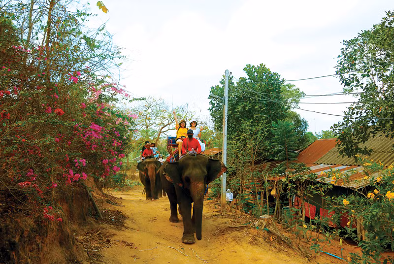 Đến với thành phố biển xinh đẹp Pattaya, du khách sẽ có dịp hòa mình vào những trải nghiệm thú vị, bắt đầu bằng trải nghiệm thăm làng voi Pattaya, nơi những chú voi kiểm lâm đã “nghỉ hưu” cùng các quản tượng chào đón du khách bằng hành trình tham quan trong 1 giờ đồng hồ. Tại đây có khoảng 30 - 50 chú voi thường xuyên phục vụ khách. Với một giỏ hoa quả có giá 50 bath (khoảng 35.000 đồng) làm quà thưởng, du khách sẽ làm quen với các chú voi và bắt đầu hành trình tham quan. Từ trên lưng voi, du khách sẽ đi qua con đường làng nhỏ, hai bên là hai hàng hoa rực rỡ sắc màu và những nếp nhà đơn sơ; chứng kiến cảnh quản tượng tắm, vui đùa và cho voi ăn lá mía...