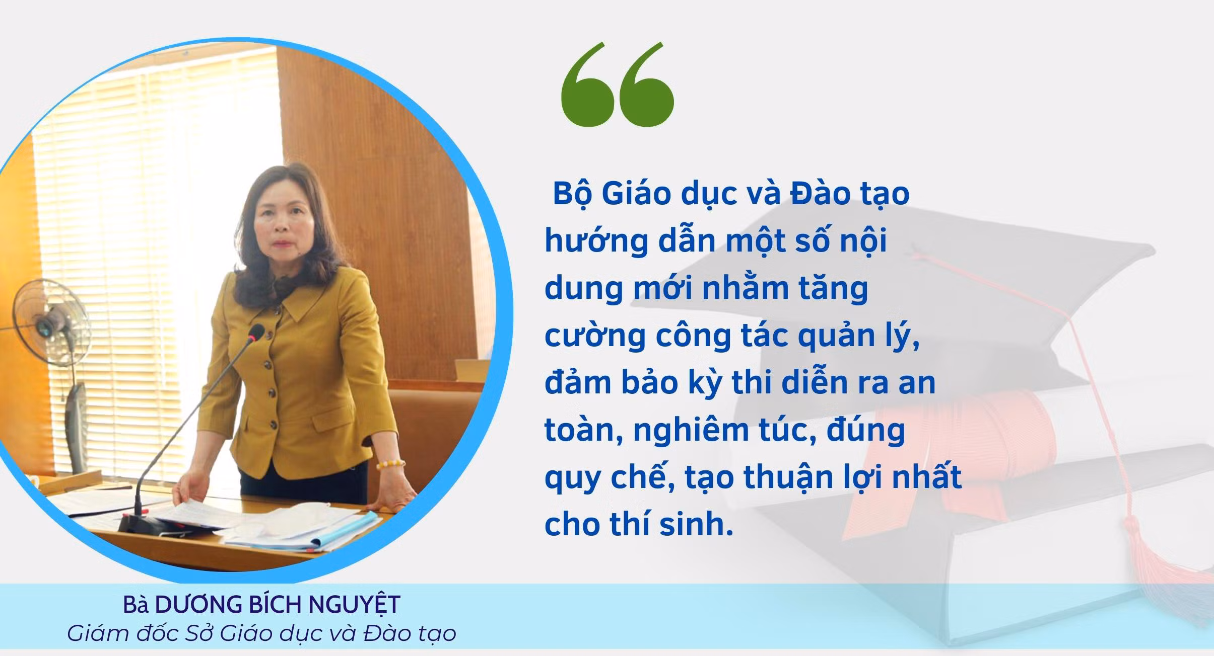 Bà Dương Bích Nguyệt: Theo chỉ đạo của Bộ Giáo dục và Đào tạo, Sở Giáo dục và Đào tạo yêu cầu hiệu trưởng các trường phổ biến quy chế đến cán bộ tham gia tổ chức kỳ thi và thí sinh dự thi, đảm bảo tất cả lực lượng tổ chức thi và thí sinh dự thi phải nắm chắc quy chế thi. Trưởng Ban Chỉ đạo thi tỉnh đề nghị Tỉnh đoàn tăng cường tuyên truyền, vận động đoàn viên, thanh niên thực hiện nghiêm quy chế thi.