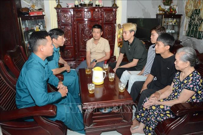 Ban Chỉ huy quân sự phường Tam Thuận, TP Đà Nẵng động viên ba anh em trước ngày nhập ngũ.
