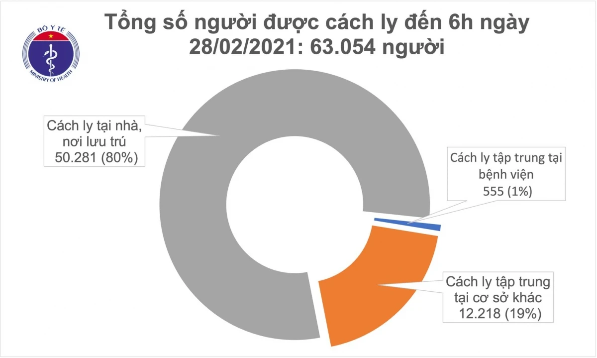 Bộ Y tế cho biết, tính từ 18h ngày 27/2 đến 6h ngày 28/2, Việt Nam không ghi nhận ca mắc COVID-19 mới.