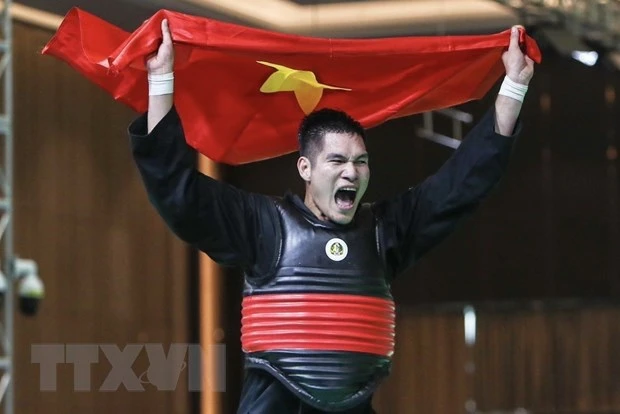Trong màn tranh tài tại nhà thi đấu Chroy Changvar ở thủ đô Phnom Penh của Campuchia, võ sỹ Nguyễn Tấn Sang đã giành chiến thắng 26 - (-2) trước võ sỹ Bin Sheik Alau'ddin của Singapore.