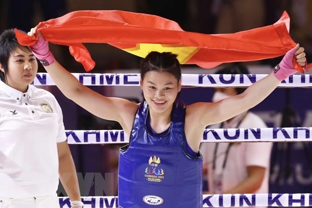 Chưa dừng ở đó, Bàng Thị Mai đã thi đấu ấn tượng để thắng knock-out võ sỹ chủ nhà Campuchia để mang về tấm huy chương Vàng thứ 3 cho Kun Khmer Việt Nam trong ngày 10/5.