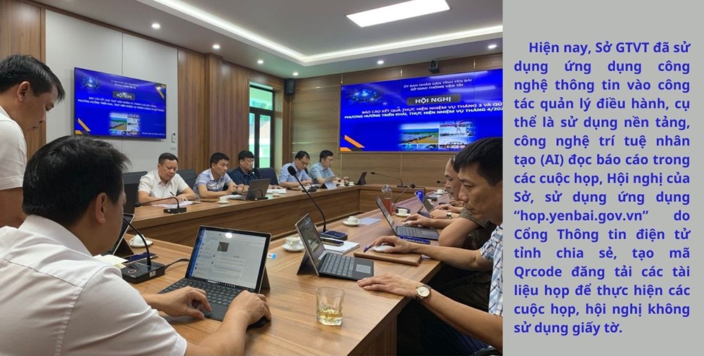 14h chiều, cuộc họp Đảng ủy Sở Giao thông vận tải (GTVT) tỉnh Yên Bái bắt đầu. Sau lời giới thiệu thành phần từ đại diện Văn phòng Sở, lãnh đạo Đảng ủy, Ban giám đốc Sở tuyên bố lý do cuộc họp và đề nghị các phòng báo cáo tình hình công việc. Thay vì trưởng các phòng ban đứng dậy đọc báo cáo thì bộ phận điều hành ứng dụng AI đã bắt tay vào thực hiện. Giọng "phát thanh viên” vang lên, tròn vành rõ tiếng, chuẩn xác từng dấu chấm, phẩy. Ngoài đọc báo cáo, những phần về kết quả thực hiện, phương hướng và đề xuất, giải pháp được AI nhấn mạnh rành mạch. Buổi họp diễn ra trong không khí nghiêm túc, không giấy tờ, bút mực, sổ sách nhưng các thành viên đều nắm rõ nội dung cuộc họp. Sự tập trung cao độ đã giúp cuộc họp diễn ra nhanh chóng, các ý kiến đóng góp, xây dựng tập trung để sau đó, kết thúc cuộc họp là những vướng mắc, tồn tại được giải quyết, những giải pháp trước mắt và lâu dài được biên bản hóa thành nghị quyết thực hiện. Và đây chỉ là một trong nhiều cuộc họp "không giấy tờ" của Sở GTVT thực hiện thời gian qua.