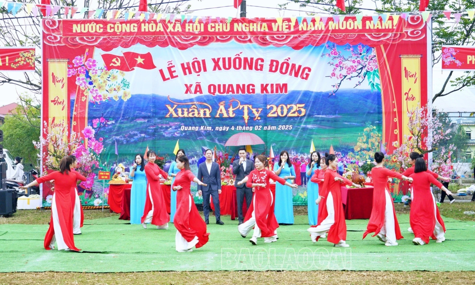 Sáng 4/2, đúng ngày Thìn đầu tiên của tháng Giêng, UBND xã Quang Kim (huyện Bát Xát) và đông đảo người dân trong và ngoài xã lại nô nức tham dự Lễ hội xuống đồng của người Giáy (còn gọi là Roóng Poọc), tại sân vận động xã Quang Kim.