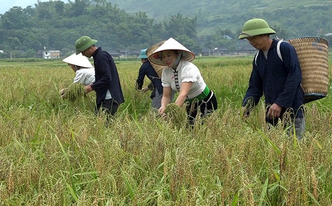 Ngay từ sáng sớm, các cô gái và chàng trai của mỗi đội thi đã ra đồng gặt lúa mang về làm cốm.