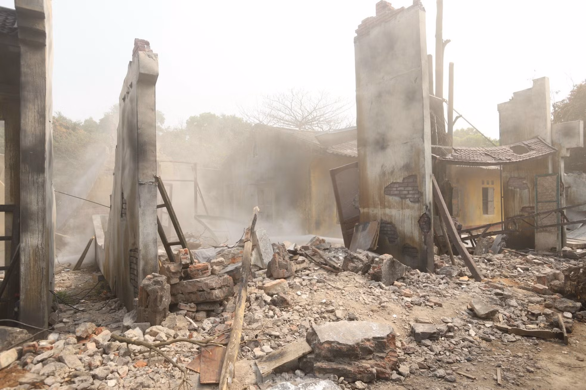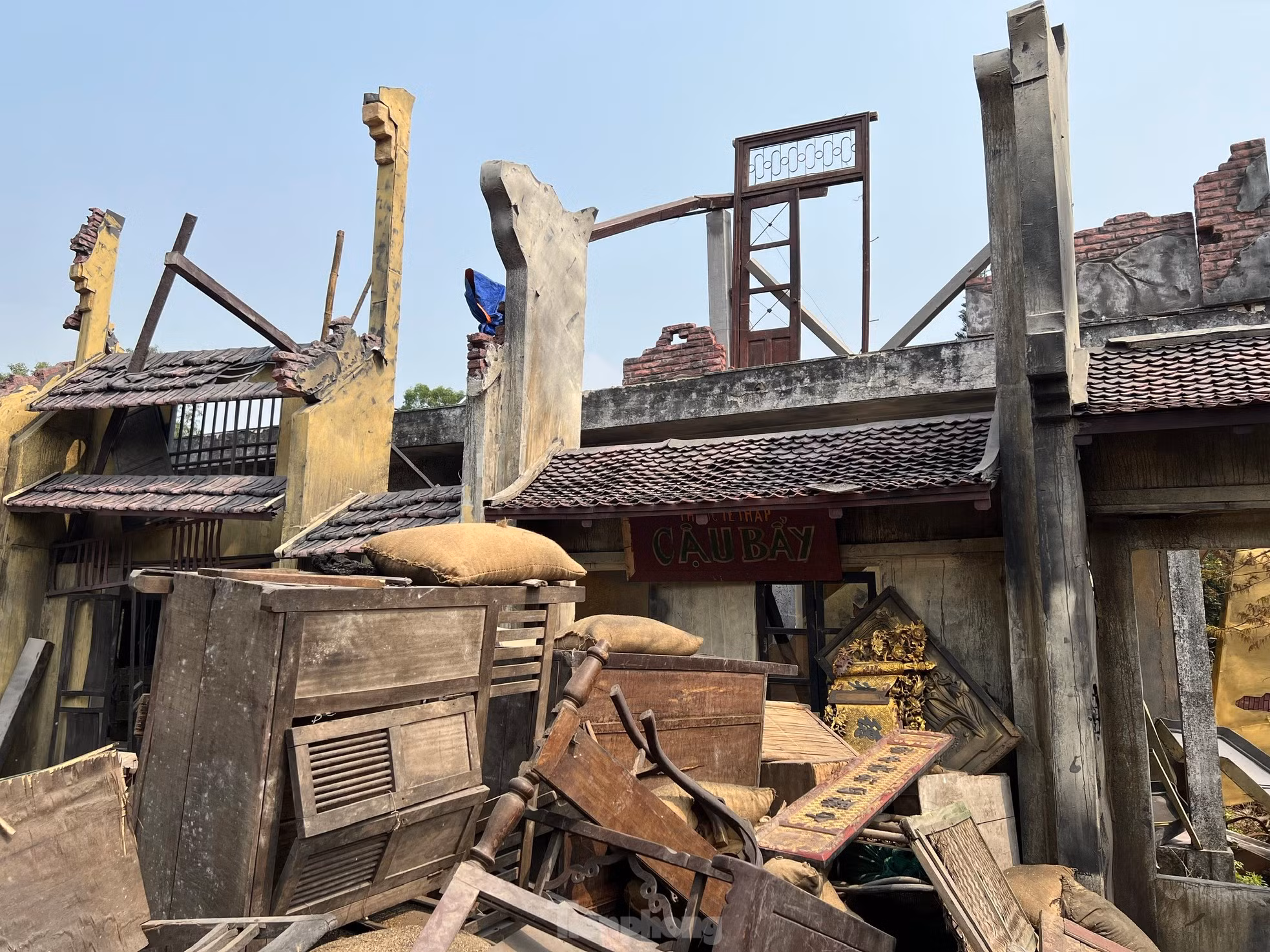 Chất liệu xốp, cao su non, gỗ dán... được đưa vào dựng nhà để những mảng tường sập xuống vừa đảm bảo kỹ xảo điện ảnh, vừa đảm bảo an toàn cho diễn viên.