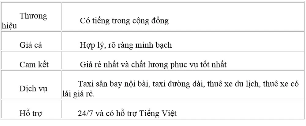 CÁC TIÊU CHI ĐÁNH GIÁ TAXI NỘI BÀI PHÚC HÀ UY TÍN