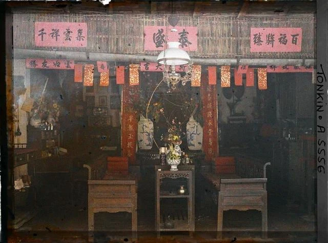 Trang trí phòng khách trong ngày Tết Nguyên đán tại một gia đình khá giả ở Hà Nội năm 1915.