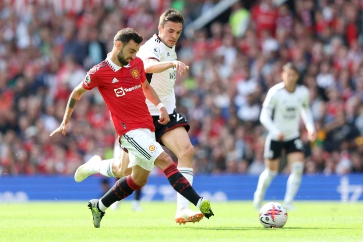 Đội chủ sân Old Trafford nhập cuộc tốt, chơi tấn công ngay từ những phút đầu trận. Man Utd đẩy cao nhịp độ trận đấu và dồn đối thủ về nửa sân. Tuy nhiên, khi các học trò của HLV Erik ten Hag đang hưng phấn, Fulham lại ghi bàn mở tỉ số. Từ pha phòng ngự phạt góc ở cột gần không tốt của Man Utd, Kenny Tete đánh đầu tung lưới đội chủ nhà.