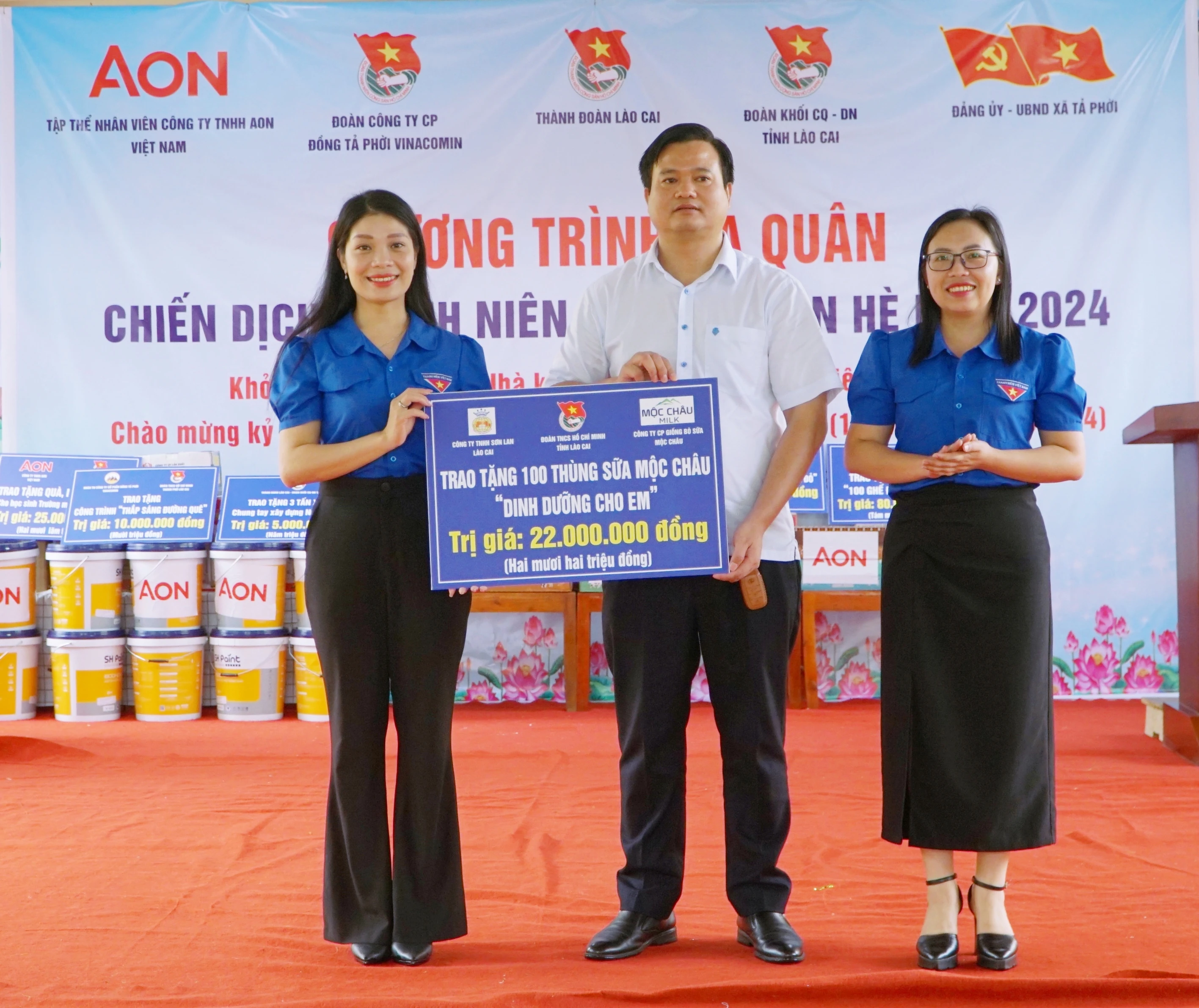 Tại chương trình, nhiều công trình, phần việc ý nghĩa được triển khai như trao tặng kinh phí hỗ trợ xây dựng nhà “Khăn quàng đỏ” trị giá 50 triệu đồng cho gia đình em Phàn Mùi Vầy, học sinh lớp 6A, Trường Tiểu học và THCS số 2 Tả Phời; Công ty TNHH MTV Hùng Vương (hãng taxi Sa Pa) tặng 100 ghế đá trị giá 80 triệu đồng cho Thành đoàn Lào Cai; Đoàn Thanh niên Công ty Đồng Tả Phời - Vinacomin trao tặng 10 triệu đồng hỗ trợ xây dựng tuyến đường điện năng lượng mặt trời cho thôn Cóc 2, xã Tả Phời; Đoàn Khối Cơ quan - Doanh nghiệp tặng 3 tấn xi măng cùng tuổi trẻ thành phố Lào Cai đổ bê tông đường giao thông nông thôn; Tỉnh đoàn và Công ty Cổ phần Giống bò sữa Mộc Châu, Công ty TNHH Sơn Lan Lào Cai trao tặng 100 thùng sữa tươi trị giá 22 triệu đồng cho thiếu nhi thành phố Lào Cai; Công ty AON Việt Nam trao tặng quà, nhu yếu phẩm trị giá 25 triệu đồng cho học sinh Trường Mầm non Tả Phời. Tổng giá trị chương trình khoảng 200 triệu đồng.