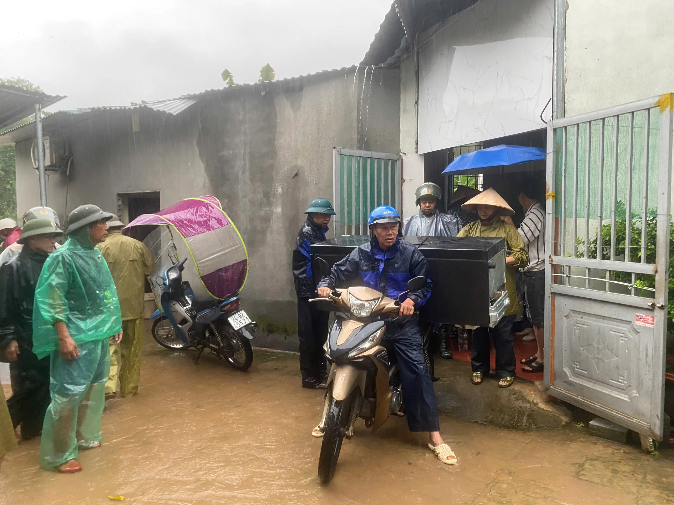 Chính quyền địa phương đã huy động các lực lượng chức năng (bộ đội, công an, lực lượng bảo vệ dân phố, dân quân) và các phương tiện kịp thời hỗ trợ người dân di chuyển tài sản, đưa người già, trẻ em tới tránh trú tại nhà văn hóa tổ dân phố để đảm bảo an toàn.