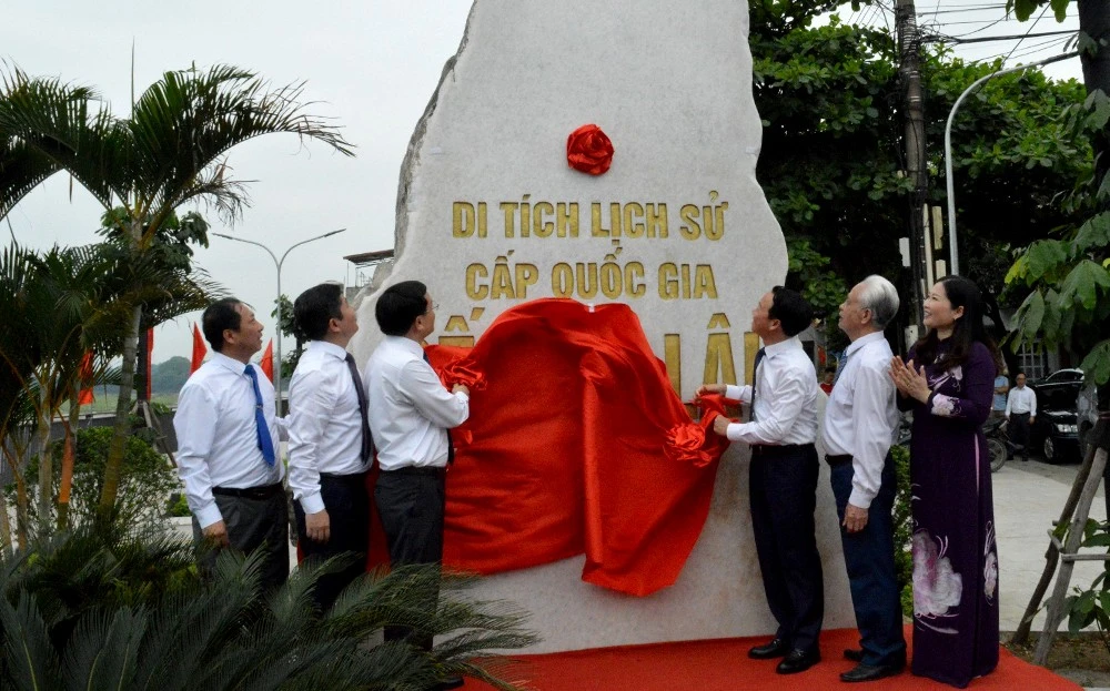 Các đại biểu thực hiện nghi lễ gắn biển Di tích lịch sử cấp Quốc gia Bến Âu Lâu.
