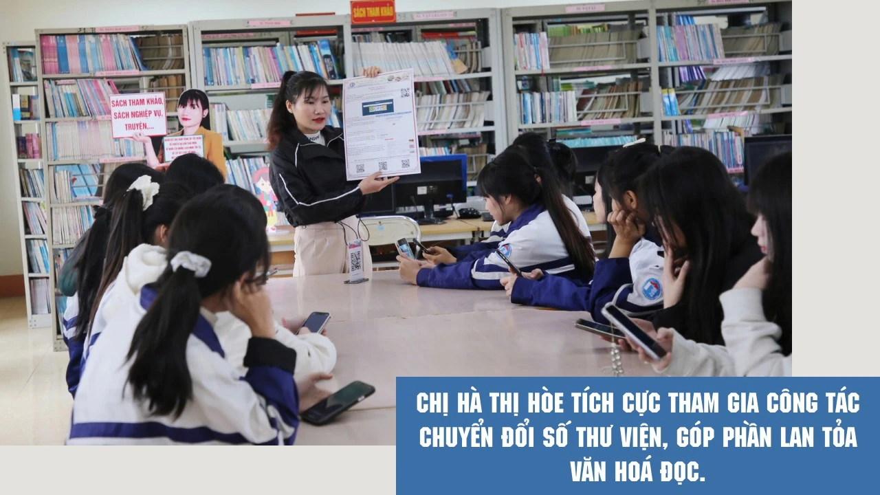 Sản phẩm của trường trong các cuộc thi “Giới thiệu sách trực tuyến” (năm 2022) và “Đại sứ văn hóa đọc tỉnh Lào Cai” (năm 2024) đều đạt giải cao nhờ sự đóng góp âm thầm nhưng quan trọng từ người thủ thư tận tụy này. Không chỉ thực hiện nhiệm vụ tại nơi mình công tác, chị Hòe còn tham gia hỗ trợ nhiều trường học trong và ngoài tỉnh chuyển đổi số thư viện, lan tỏa tinh thần chia sẻ, học hỏi và phát triển.