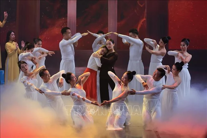 Tiết mục biểu diễn văn nghệ “Nỗi đau mặt trời”. Ảnh: Hoàng Hiếu/TTXVN