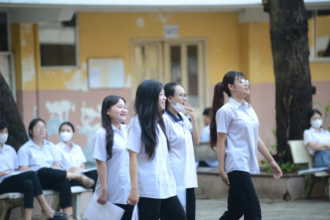 Không khí trước giờ thi tại điểm thi THPT Nguyễn Thượng Hiền, quận Tân Bình, TP Hồ Chí Minh: