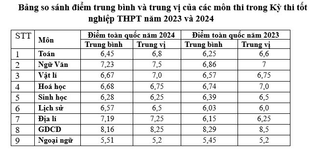 Bộ GD-ĐT đánh giá, phổ điểm của các môn thi tốt nghiệp THPT năm 2024 vẫn giữ được sự ổn định và tương đồng với phổ điểm năm 2023 và các năm trước. Điểm trung bình và trung vị của các môn thi trên toàn quốc được giữ ổn định và tương đồng so với năm 2023.