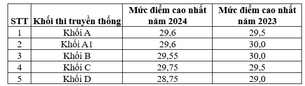 Mức điểm cao nhất các khối thi trong 2 năm 2023, 2024.
