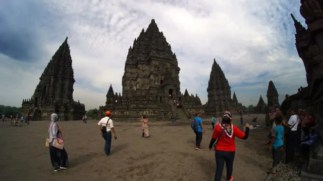 Du khách khám phá quần thể đền Prambanan tại Yogyakarta, Indonesia.