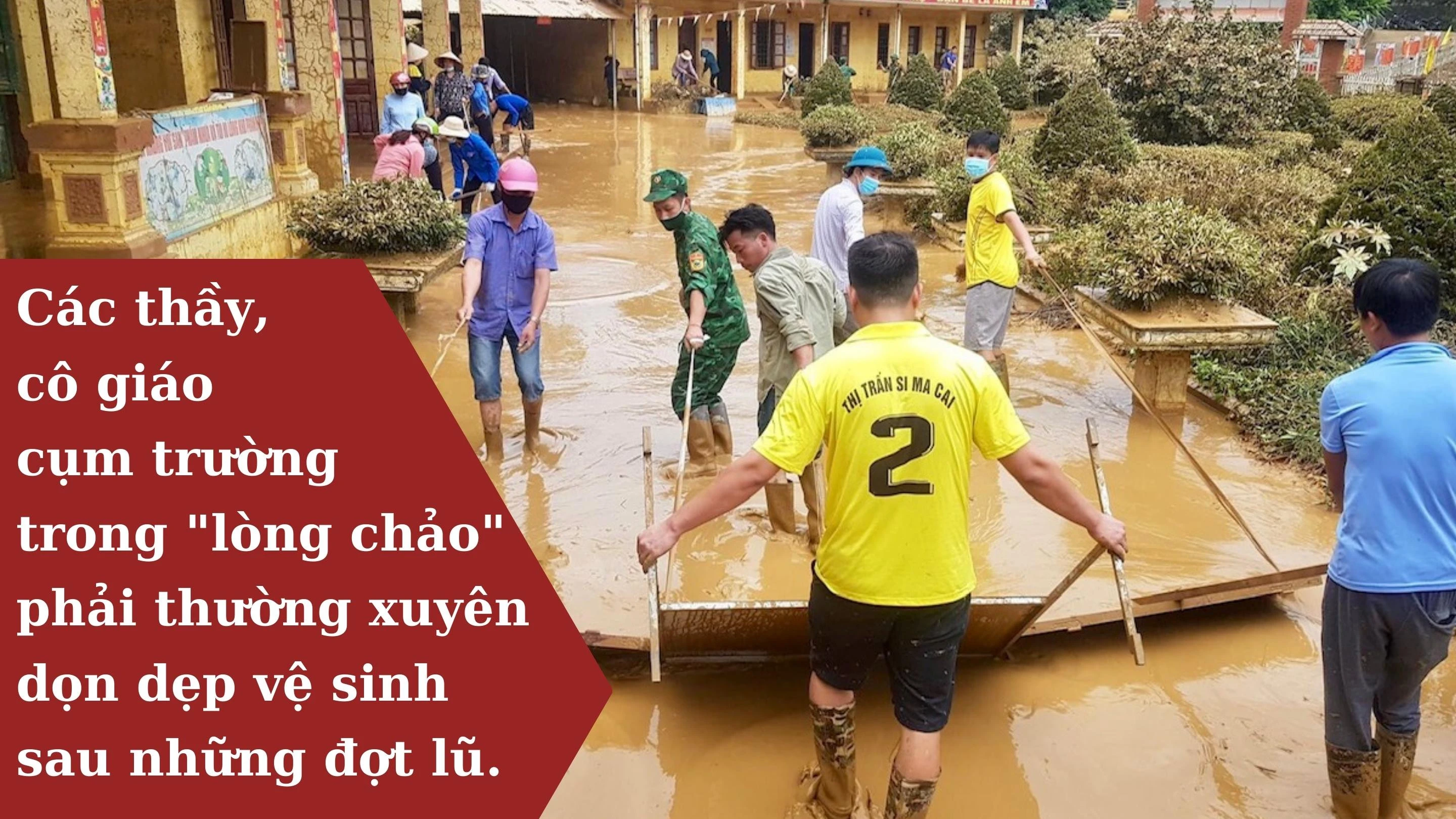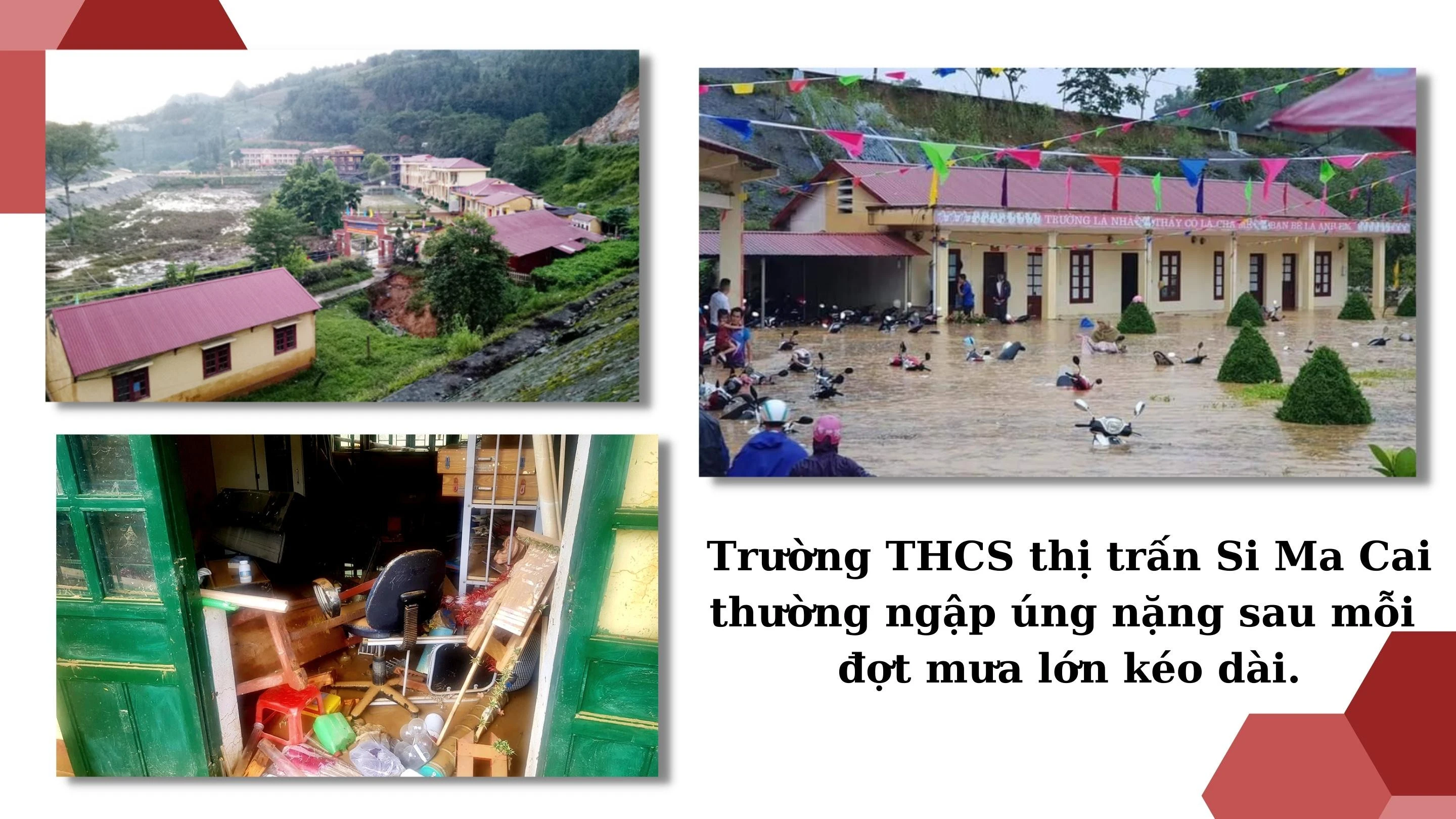 Cụm trường được xây dựng ở nơi được ví như “lòng chảo” tại trung tâm thị trấn Si Ma Cai. Mỗi khi mưa lớn kéo dài, những dòng nước xối xả từ trên cao dồn xuống “lòng chảo”, nước không kịp thoát dẫn đến ngập úng. Trường THCS thị trấn Si Ma Cai ở vị trí thấp nhất so với 2 trường còn lại. Nhiều năm trước, khuôn viên, nhà bán trú cho học sinh và tầng 1 dãy nhà lớp học của Trường THCS thị trấn Si Ma Cai thường xuyên bị ngập úng do mưa lũ. Nhà trường không thể sử dụng tầng 1 để dạy học mà đành làm nơi chứa thiết bị. Mỗi khi dự báo thời tiết có mưa lớn, thầy cô giáo và học sinh lại tất bật di chuyển các thiết bị nhẹ lên tầng 2, còn thiết bị nặng khó vận chuyển thì kê lên cao.